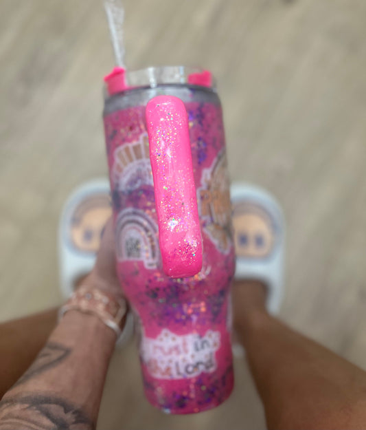 40 oz. Scripture Affirmations Tumbler Pink Tumbler Scripture Tumbler Christian Tumbler Large Tumbler Proverbs 31 Tumbler Glitter Epoxy Faith