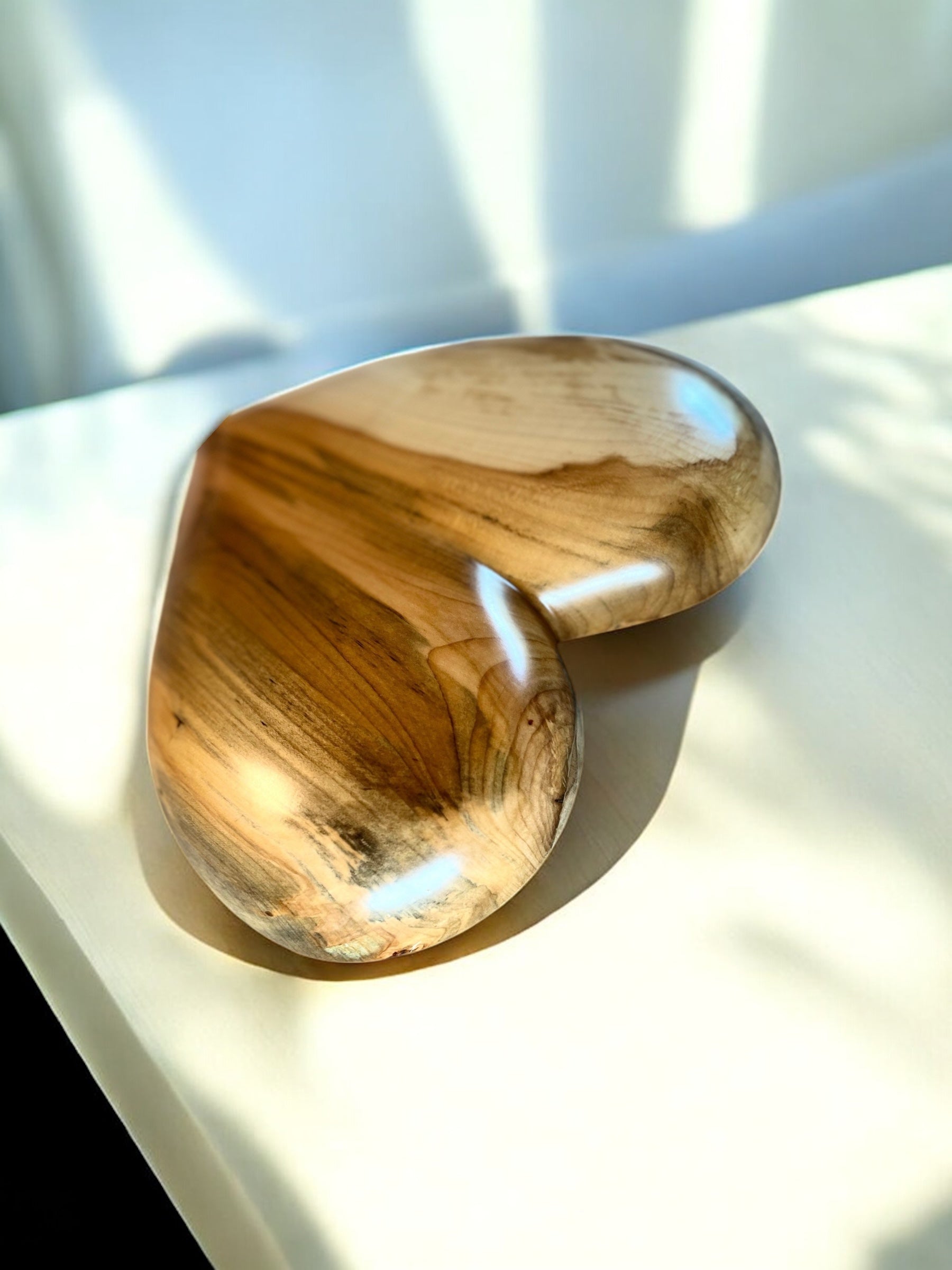 This heart is one of a kind. Due to the nature of the artisanal process, each piece of wood is individually stained, finished, handmade and a work of ART! Any coloration or marking is part of its own uniqueness and beauty.