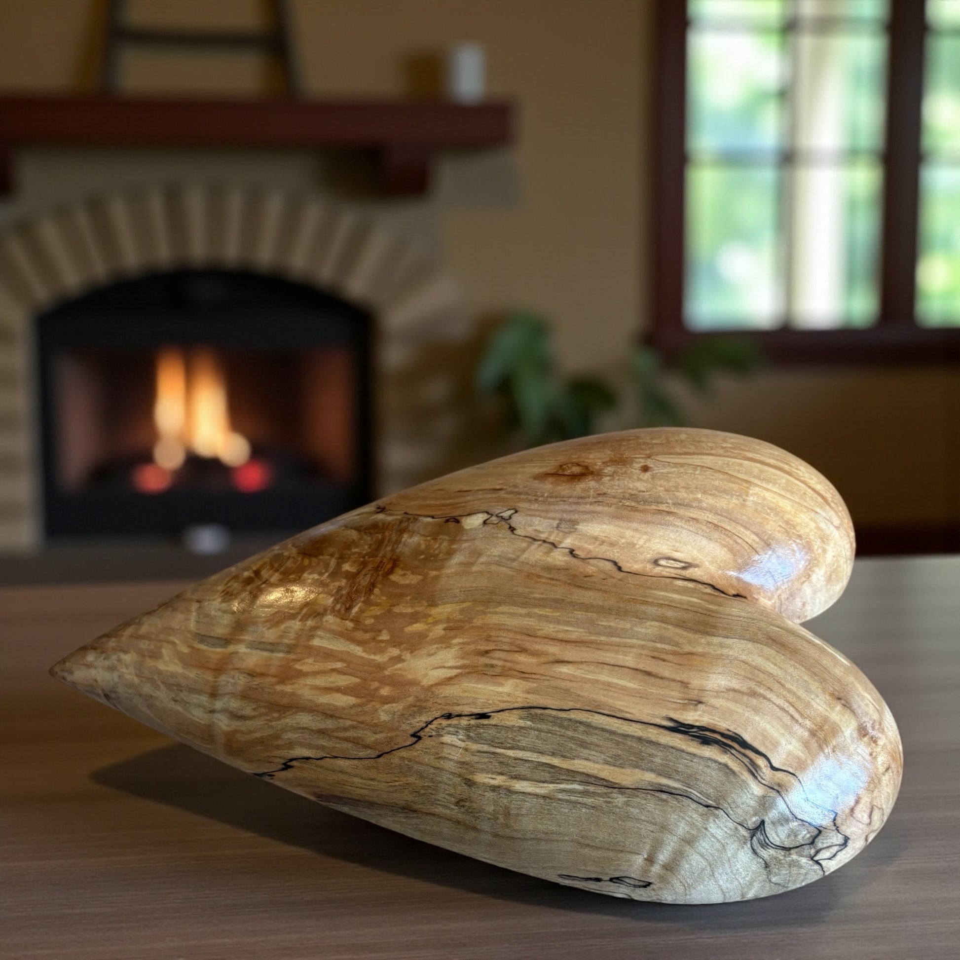 This heart is one of a kind. Due to the nature of the artisanal process, each piece of wood is individually stained, finished, handmade and a work of ART! Any coloration or marking is part of its own uniqueness and beauty.