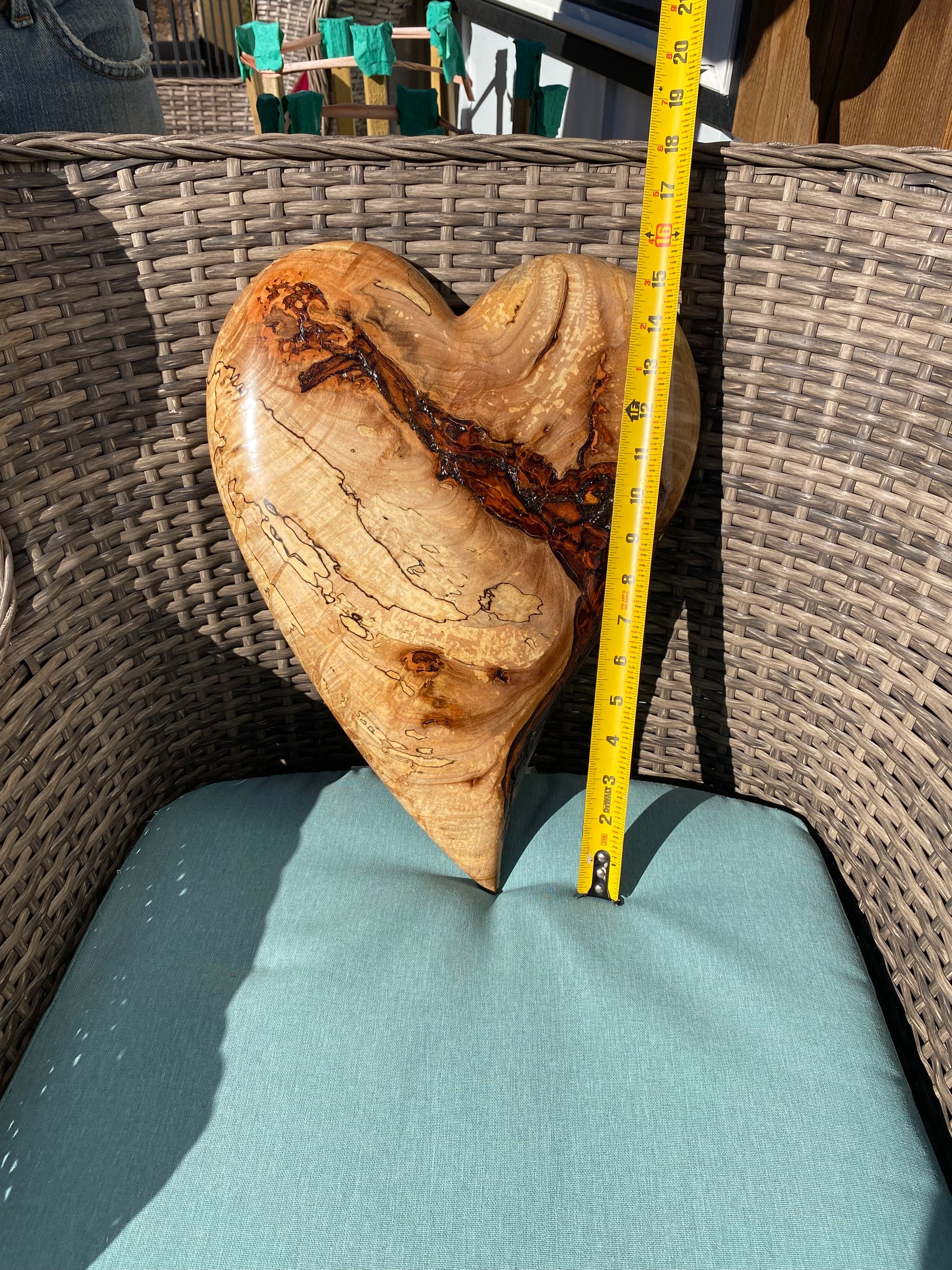 This heart is one of a kind. Due to the nature of the artisanal process, each piece of wood is individually stained, finished, handmade and a work of ART! Any coloration or marking is part of its own uniqueness and beauty.