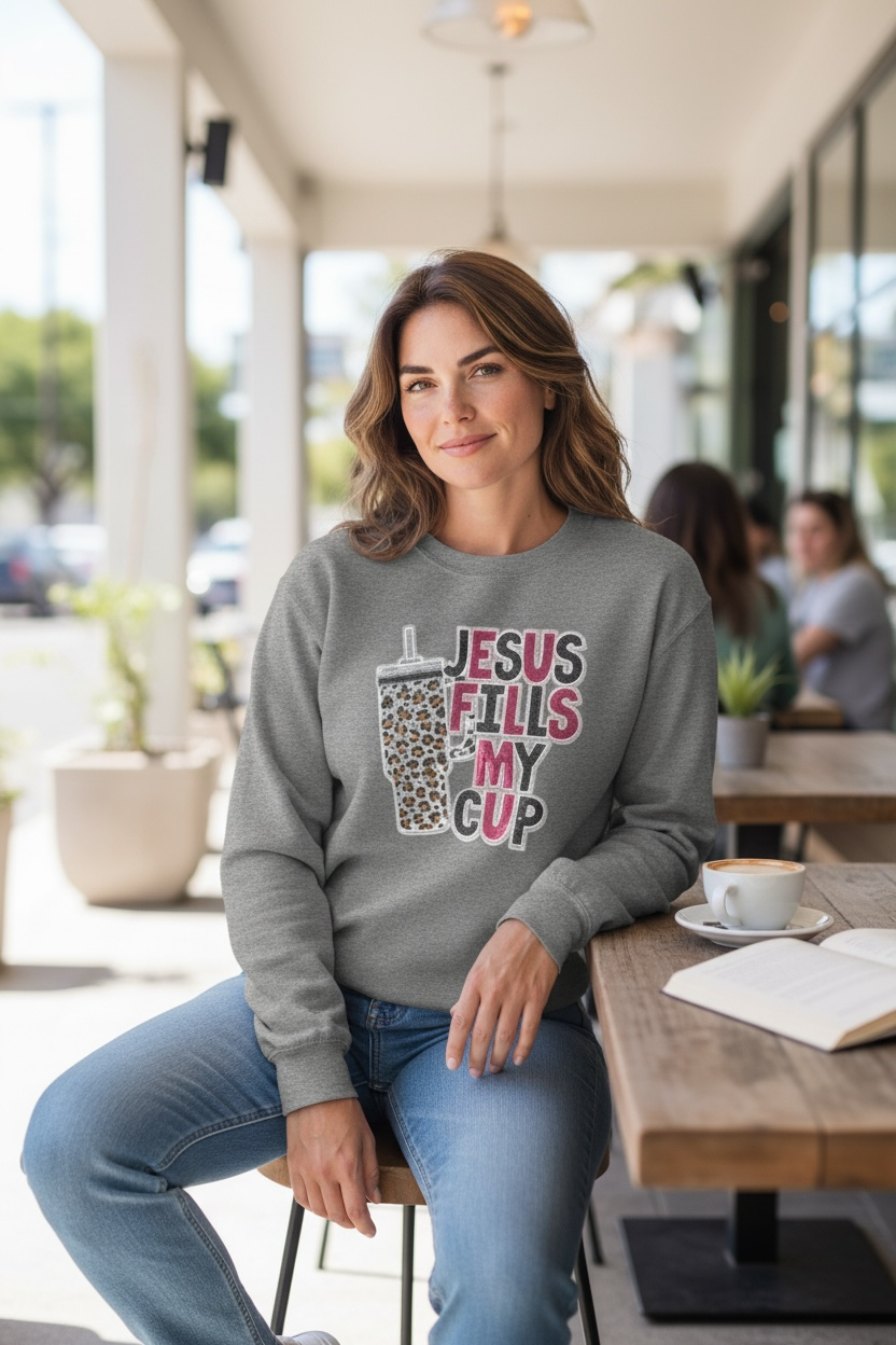 Jesus Fills My Cup Sequin leopard edition sweatshirt