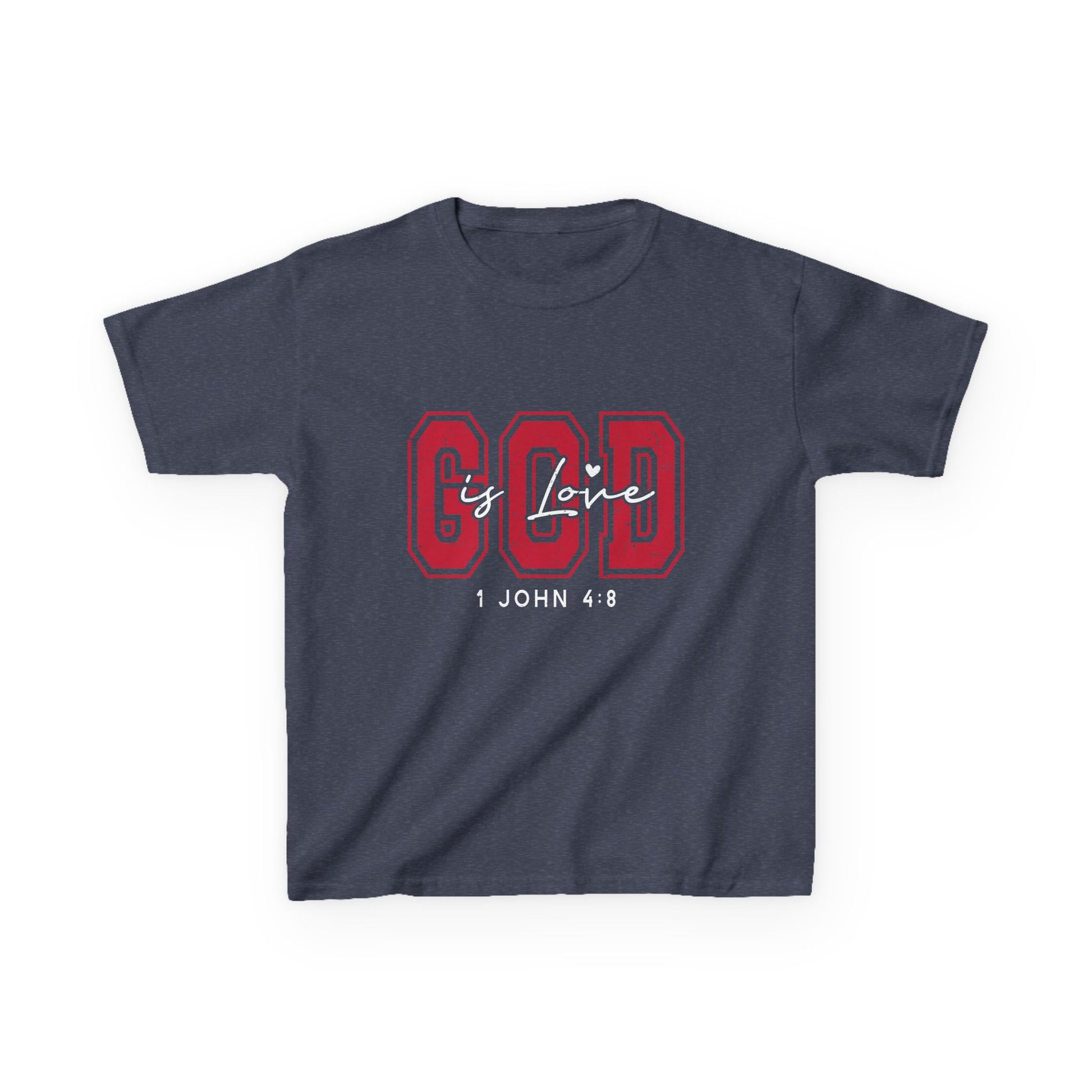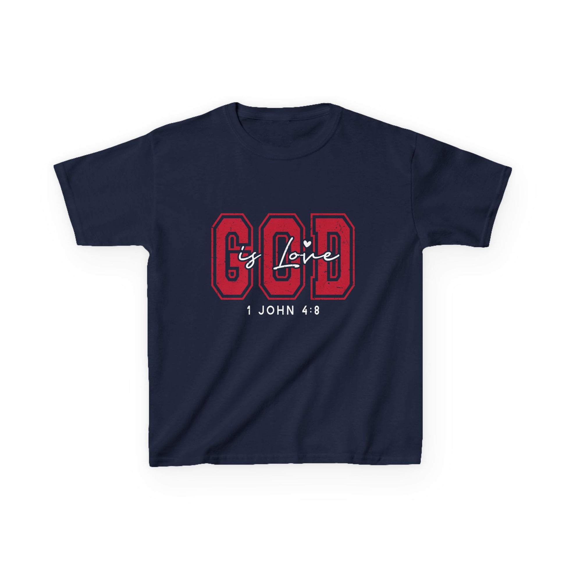 Kids Tee — Distressed Red 'GOD is love' Varsity Lettering