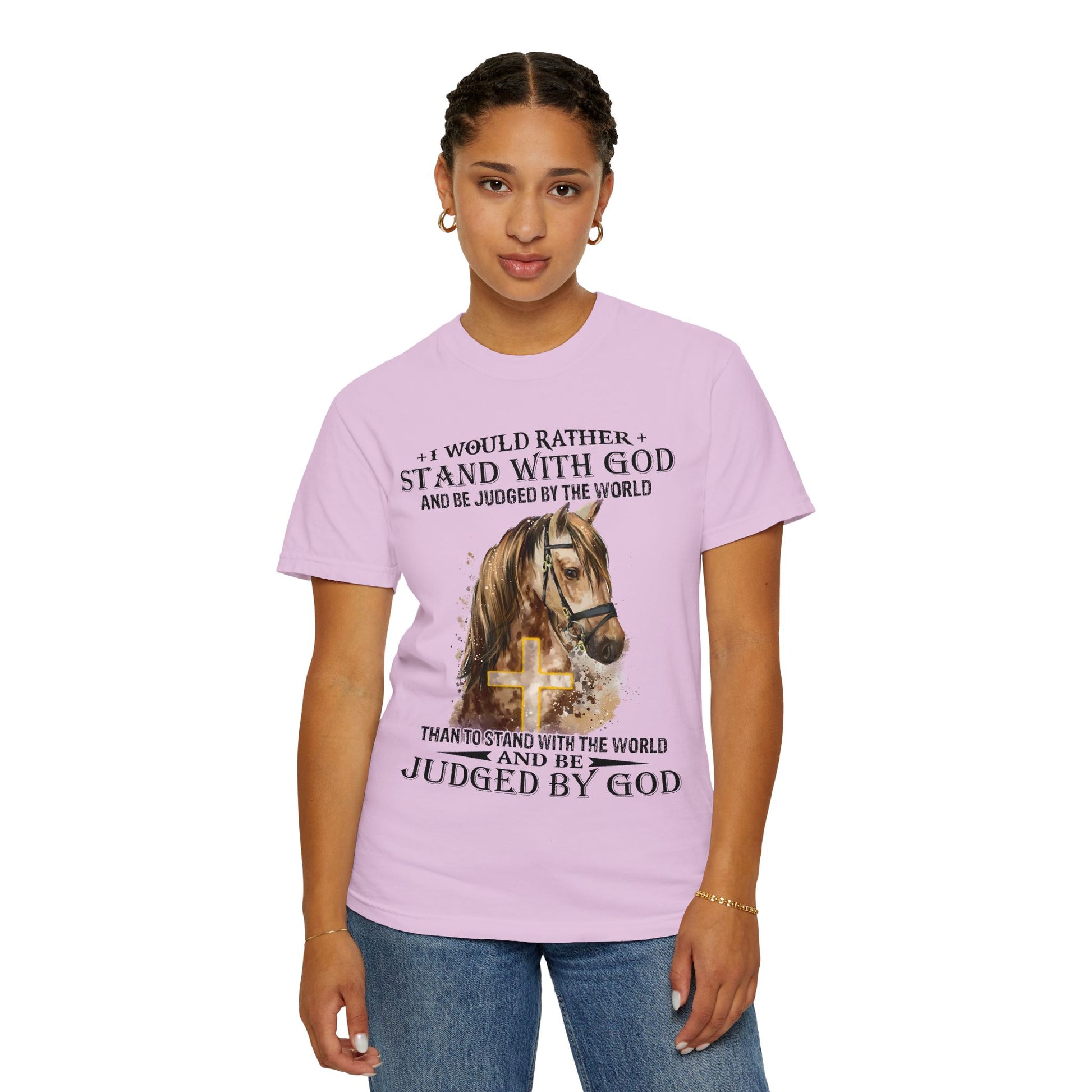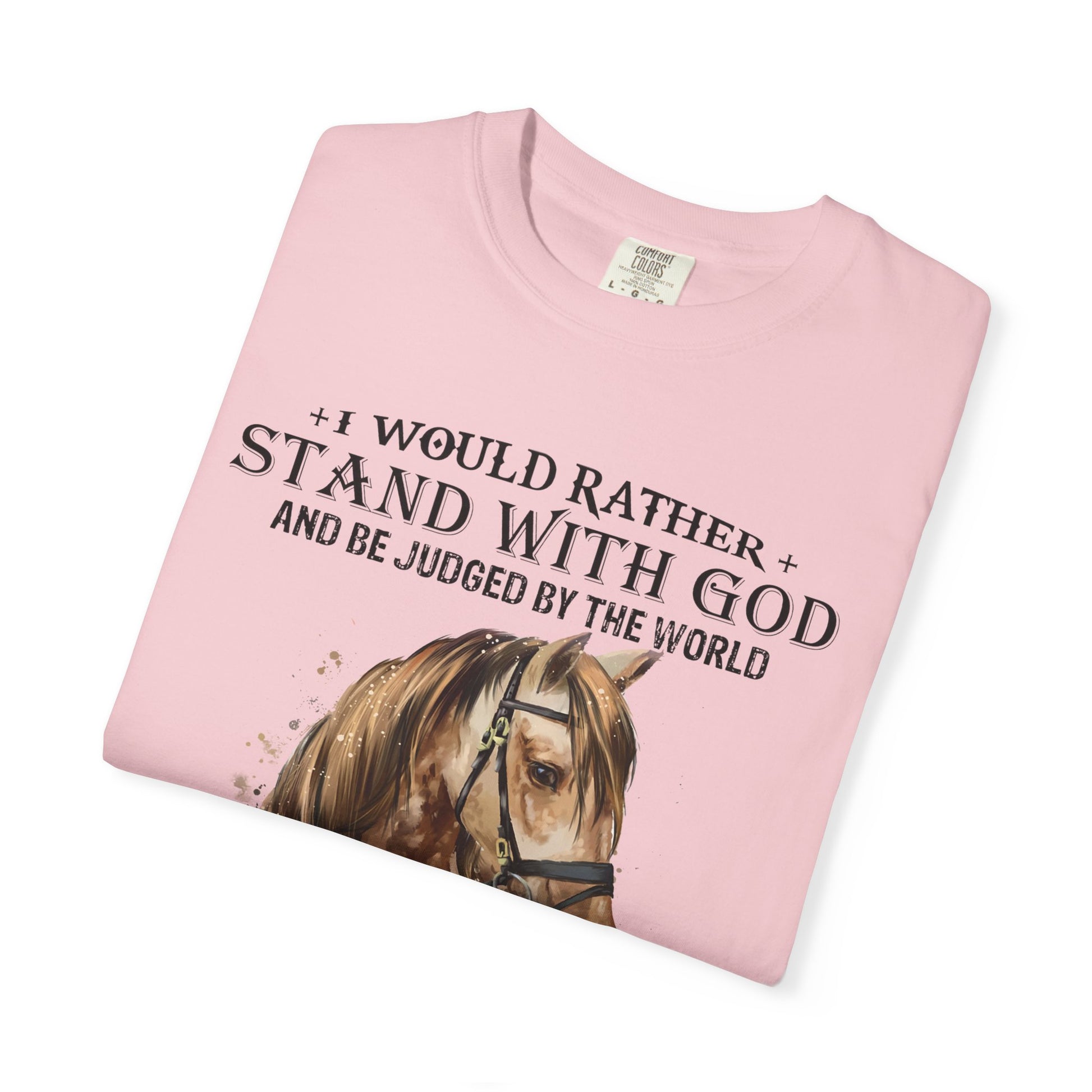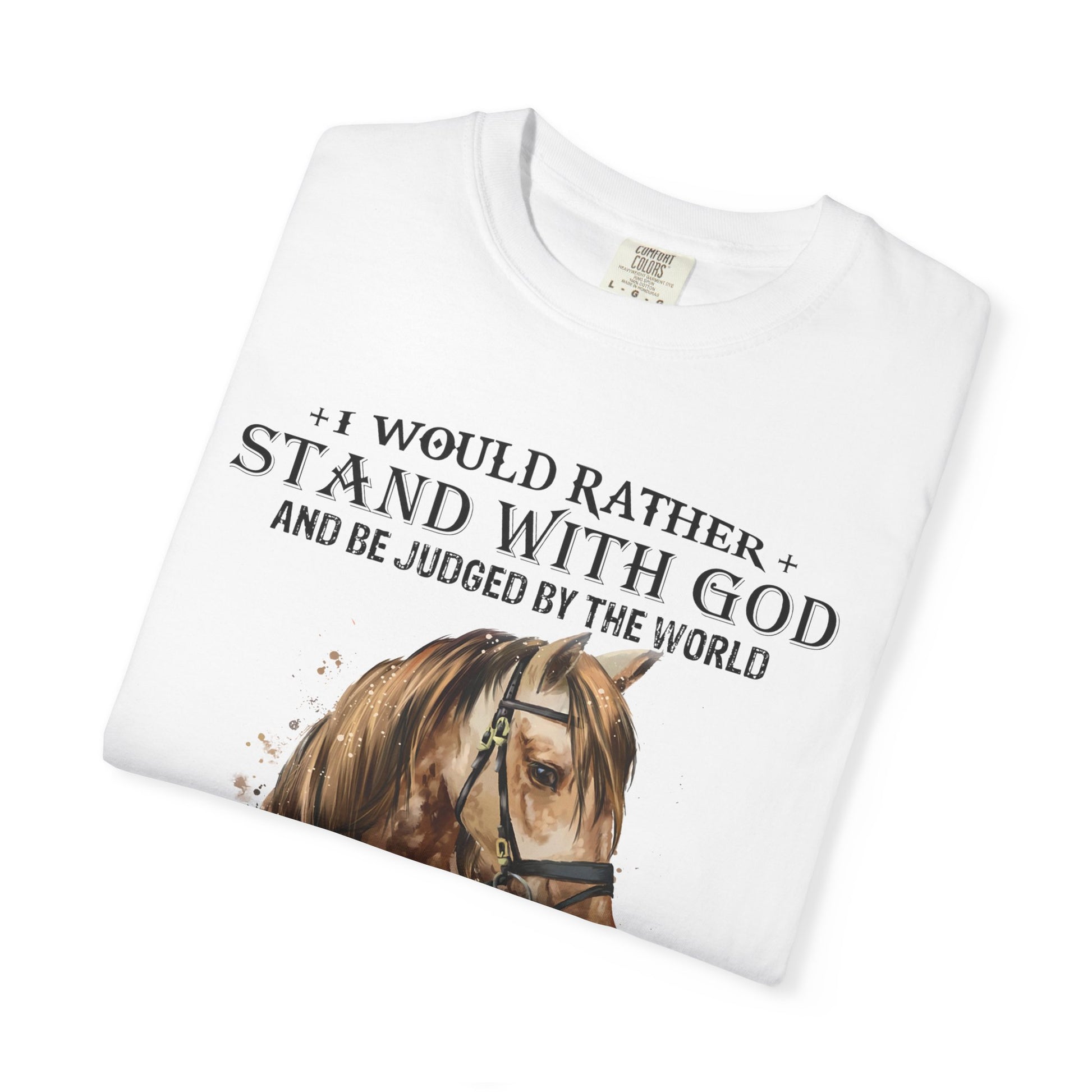 Stand With God Horse T-Shirt — 'I Would Rather Stand With God' Christian Faith Tee