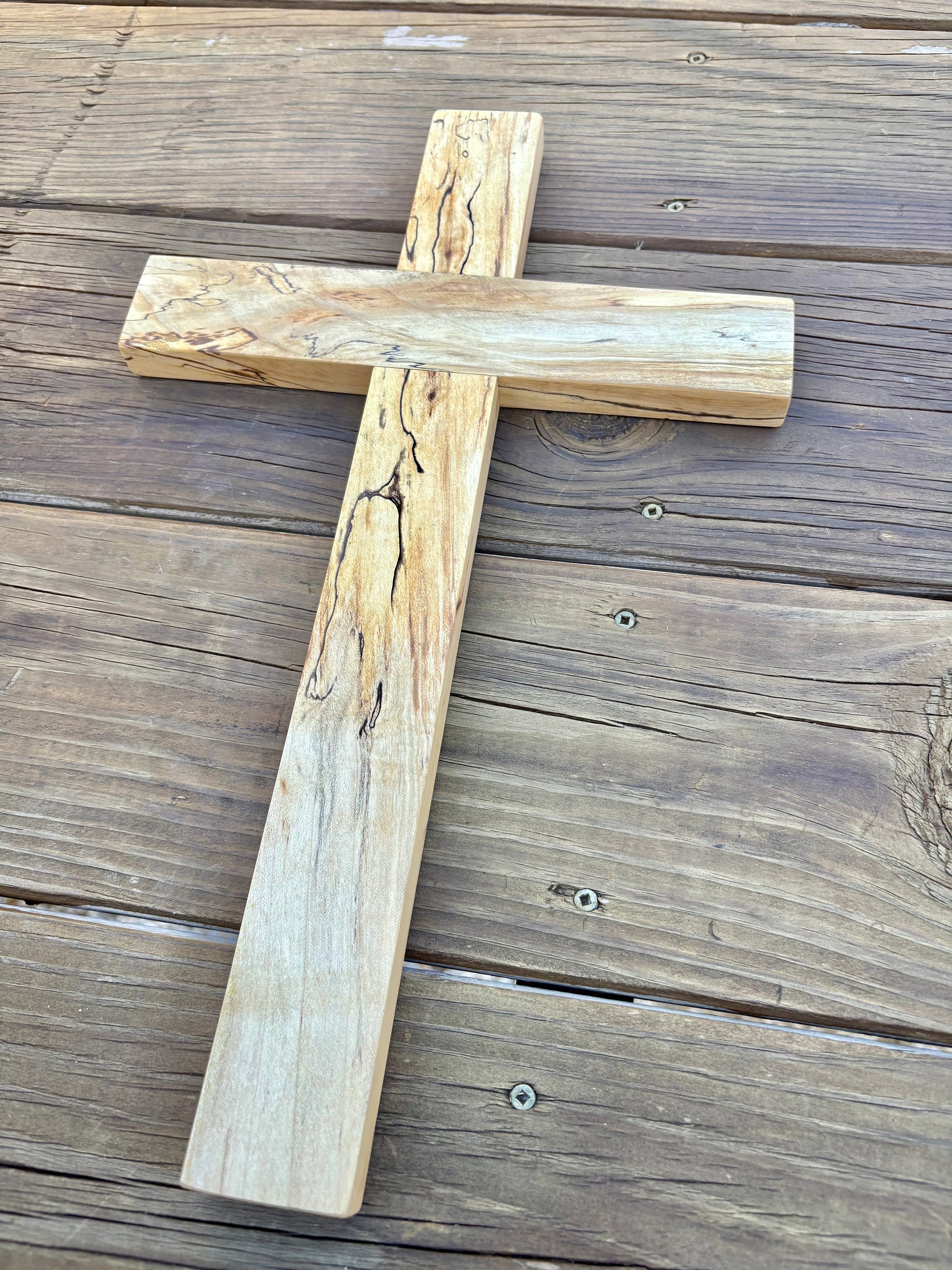 This cross s one of a kind. Due to the nature of the artisanal process, each piece of wood is individually stained, finished and hand made. Any coloration or marking is part of its own uniqueness and beauty.